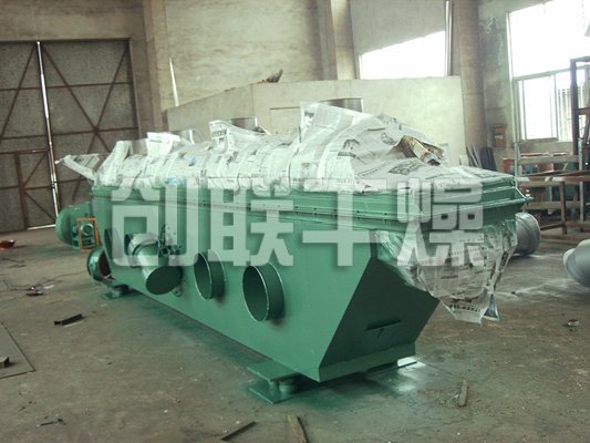 物料自進(jìn)料進(jìn)口進(jìn)入機內,在振動(dòng)力作用下,物料沿水平面流化床拋擲,向前連續運動(dòng),熱風(fēng)向上穿過(guò)流化床同濕物料換熱后,濕空氣經(jīng)旋風(fēng)分離器除塵后由排風(fēng)1:3排出.干燥物料由排料進(jìn)口排出。